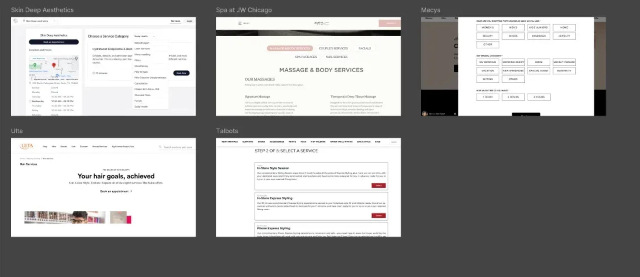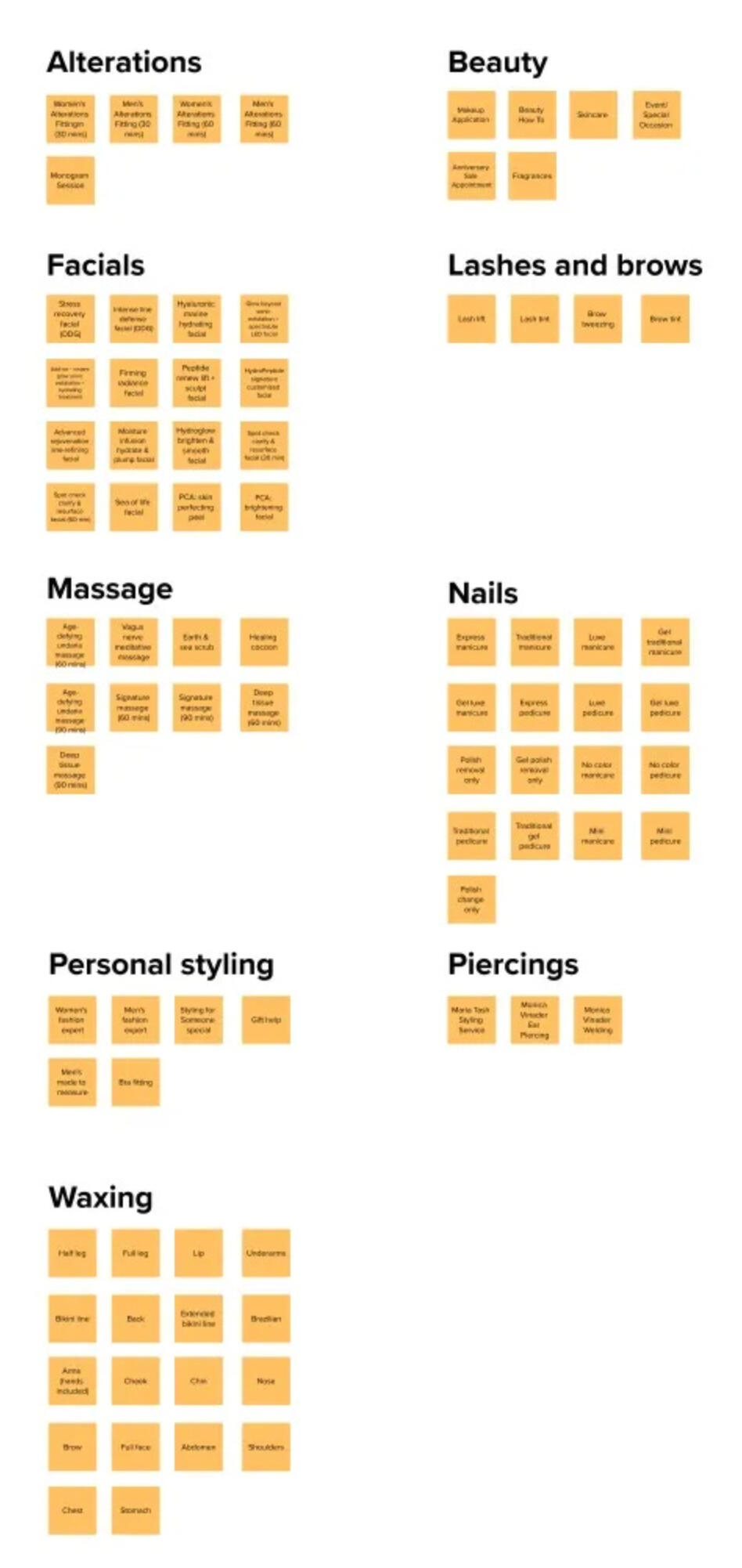 Before changing the service categorization, I researched how other companies displayed their services. I explored retail stores and service industries, like spas and salons.